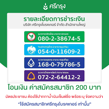 3.หลักฐานการโอนเงิน 200 บาทหรือตามความคุ้มครองประกันอุบัติสำหรับสมาชิกศรีกรุงที่ท่านต้องการ แล้วส่งหลักฐานการสมัครที่ไลน์ ได้เลยครับ